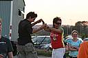 Als Letzte spielten Skyliner, in der langsam sinkenden Abendsonne (ab Bild 28) boten die sechs Musiker einen Mix bekannter Hits der achtziger und neunziger Jahre. Nachdem Gitarrist Olli fast jeden Besucher persönlich begrüßt hatte konnte die Party steigen. Dabei durften die Toto Songs unter dem alter Ego ninety-nine ebenso wenig fehlen, wie die von Gastsängerin Svenja mit klarer Stimme vorgetragenen Soul-Klassiker. Frontmann und Sänger Thomas bot mit seinen abwechslungs- und gestenreichen Gesang eine unterhaltsame Performance. Der wie immer im Hintergrund sitzende(!) Drummer "Zacky" konnte mit seinen Soli überzeugen. Bassist Martin (Wunz) machte diesmal richtig Stimmung und wurde von Didi an den Keyboards unterstützt. Die Stimmung in der untergehenden Abendsonne war herrlich und es wurden die Feuerzeuge rausgeholt. Den unvermeidlichen Schluss bildete Purple Rain, wobei sich Olli mit seinen Gitarrensoli in Ekstase spielte und alles um sich herum vergaß. Großartig.