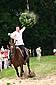 Zuerst wurde mit dem Flaschenreiten begonnen: die Reiter mussten eine Holzflasche im vollen Galopp aus der Halterung reißen. Mit jedem Durchgang wurde diese um 15 cm höher gehängt. Wer die Flasche beim zweiten Mal nicht herausreißen konnte musste ausscheiden. Zur Stärkung gab es für jeden Reiter einen kräftigen Schluck aus der Pulle des 'Doktors'.