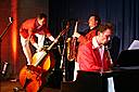 Boogieman Vito Becker, der Tasten-Akrobat aus Vlotho gastierte mit seiner Magic Boogie Show im BÜZ Minden und begeisterte das Publikum mit einer frechen Mischung aus Boogie Woogie, Rock'n'Roll und Blues. Im stilechten 50er Jahre Outfit präsentierte er eine gnadenlos gute Bühnenshow, die durch den Auftritt eines fantastischen Saxophonisten abgerundet wurde. Sein neuer Partner Kontrabassist Falko Burgert wusste sein großes Instrument zu den wildesten Turnübungen zu gebrauchen, während er die vier Saiten des Basses um die Wette slappen ließ und den Gesang beisteuerte. Der New-Orleans-Boogie-Woogie mit Ohrwürmern der 50er Jahre und bekannten Rock'n'Roll-Hits wie "All Shook Up" wurde mit ganzem Körpereinsatz zelebriert. Wie Jerry Lee Lewis in seinen besten Jahren haute Vito mal mit dem Schuhabsatz auf seine "Boogie-Orgel" dabei gleichzeitig Bluesharp spielend und feuerte das Publikum immer wieder an. Das Publikum ging voll mit und kam aus dem Fingerschnippen nicht mehr heraus. Den Musikern stahlen allerdings die beiden Tanzpaare fast die Show. Mit ihren originalgetreuen Kostümen und ihren akrobatischen Einlagen ließen sie die Rock'n'Roll Zeit wieder auferstehen. So verging die Zeit wie im Fluge und Vito und seine Truppe wurden nicht ohne Zugaben von der Bühne gelassen.